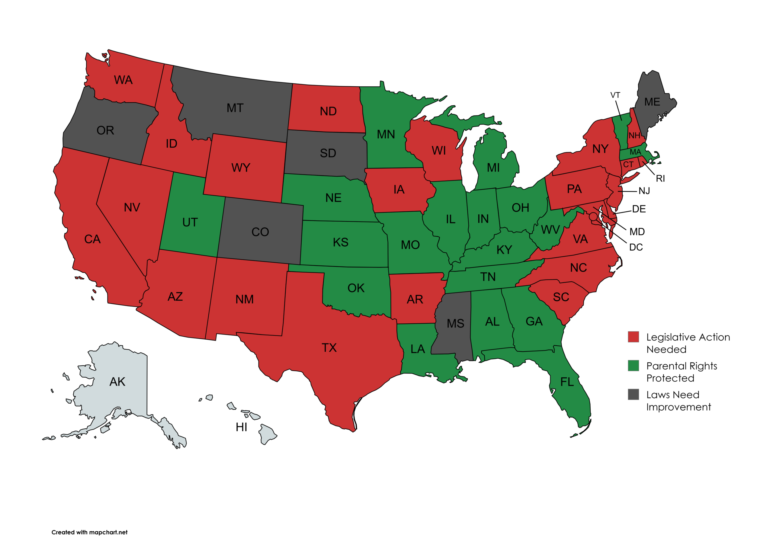 Green means “parental rights protected”